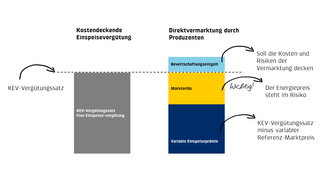 Sind die erzielten Markterlöse inkl. Bewirtschaftungsentgelt kleiner als der Referenz-Marktpreis, liegt der Gesamterlös für den Produzenten unter dem KEV-Vergütungssatz.